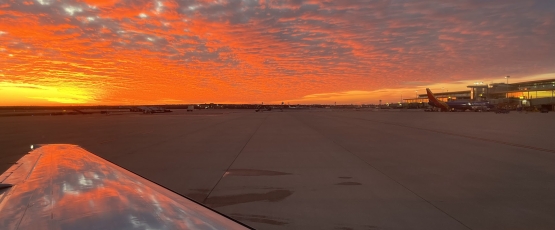 • The sun sets over the tarmac at Will Rogers International Airport in Oklahoma City.