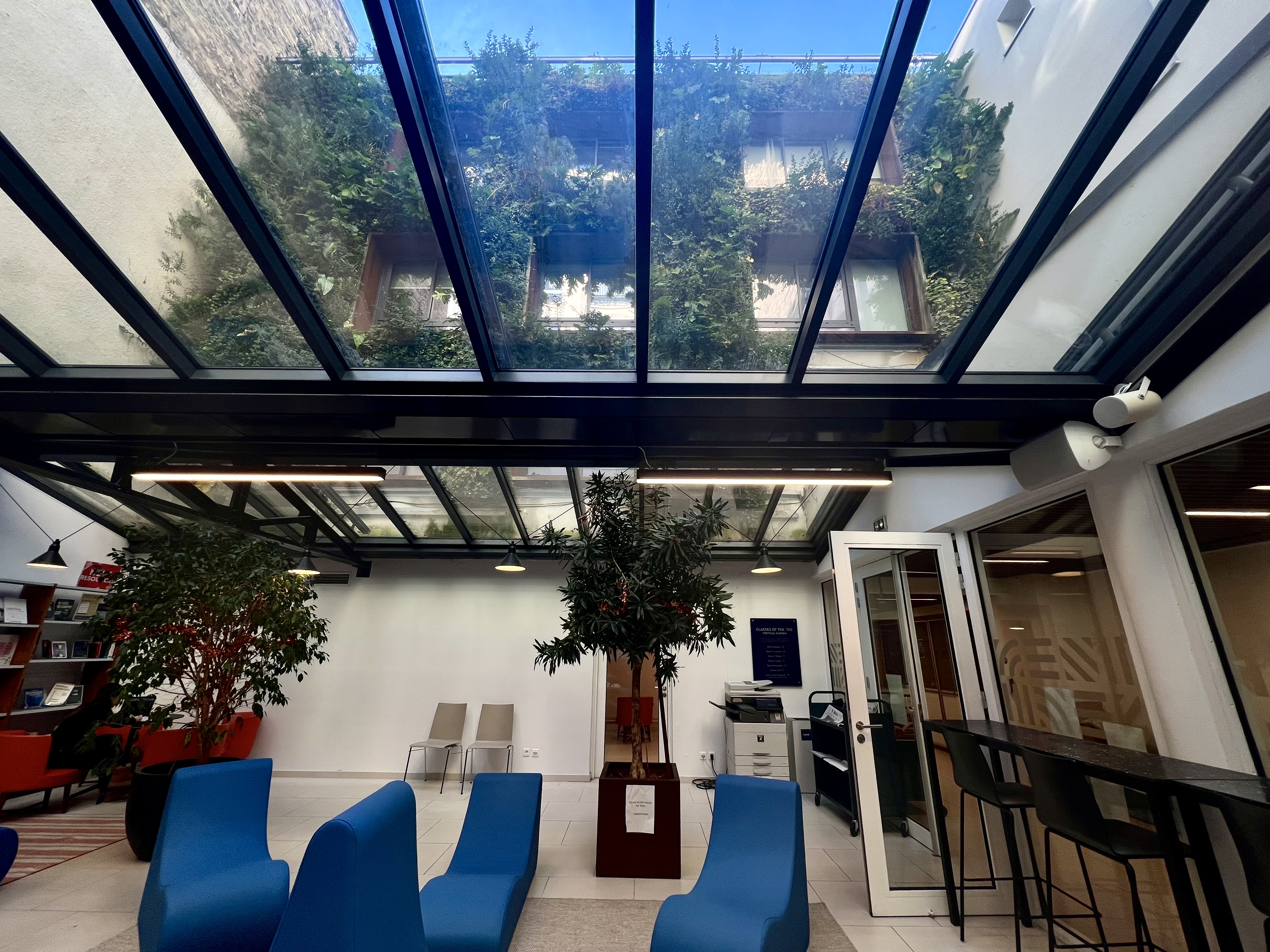 For years, the Atrium doubled as both a library and a social space. Books lined the shelves, long wooden tables invited collaboration, and quiet corners offered a refuge on busy days. Its glass roof connects students to the outdoors with a view of a vertical garden outside and natural lighting on a summer day or authentic white noise from the rain in the fall. With its prime location, glimpse of nature, constant traffic, and multipurpose space it felt unique compared to other rooms on campus. It wasn’t flashy, but it was functional and felt lived-in.