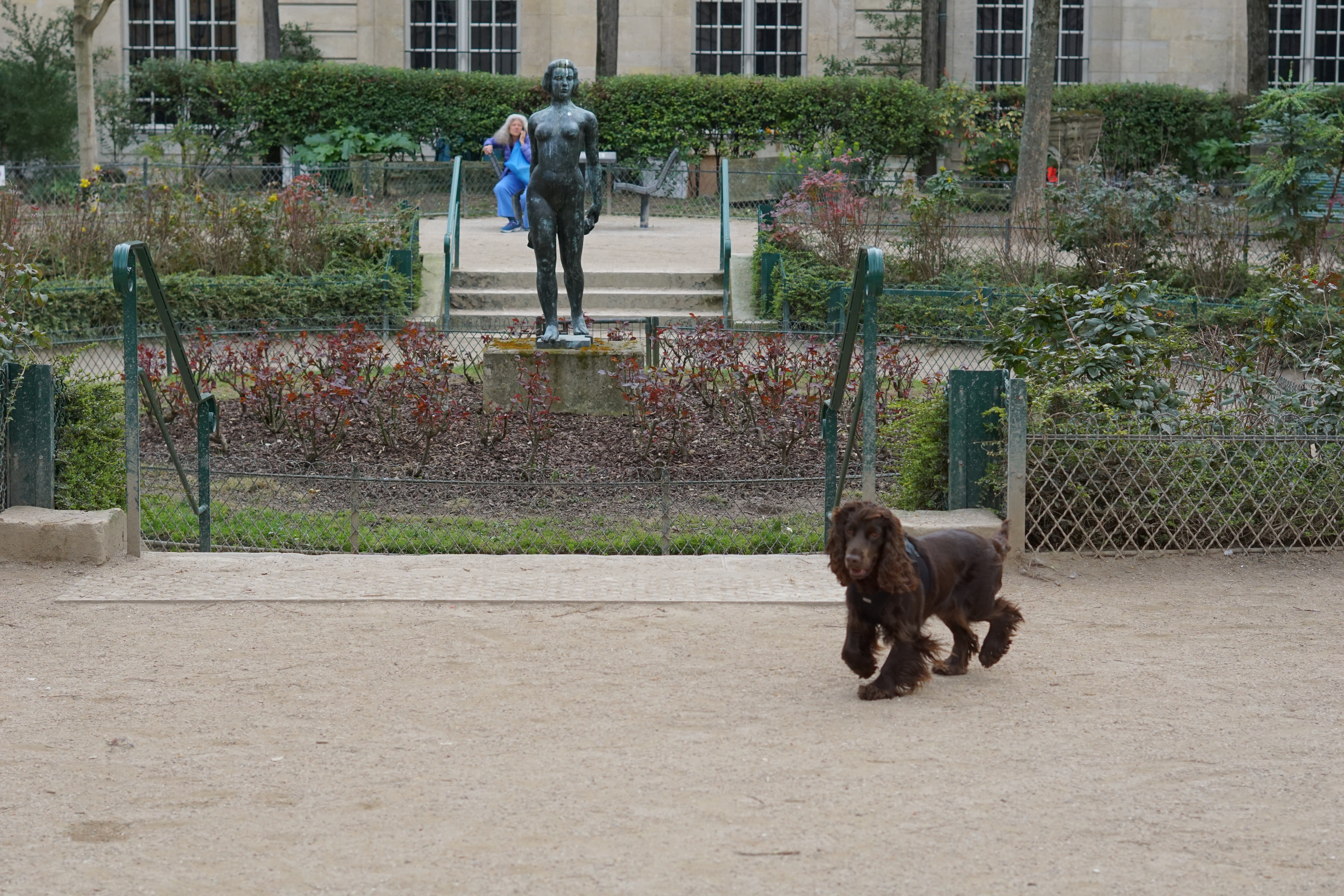 Taking her advice, I went for a walk and found myself at one of my favorite spots in Paris—the dog park at the Jardin de l’Hôtel Lamoignon on Rue des Francs-Bourgeois. The park is a lively spot, filled with playful pups and their often-friendly owners.