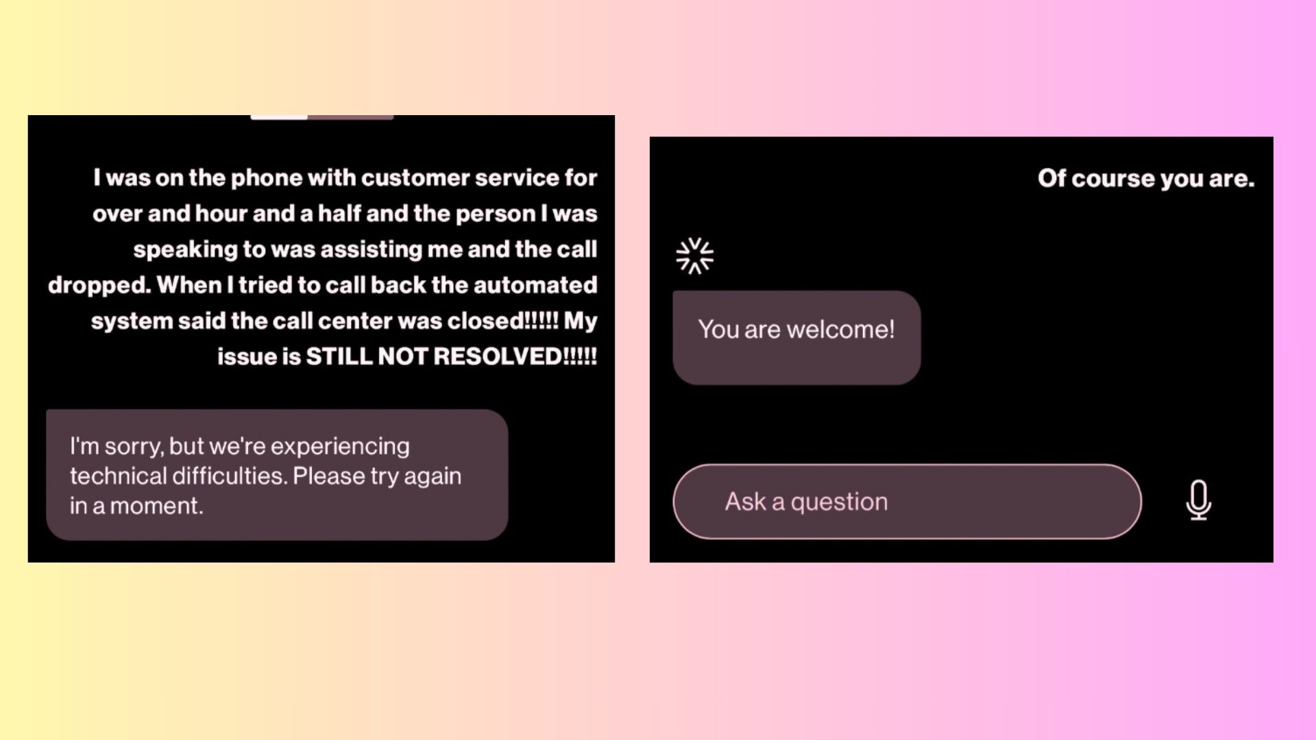 They often have AI chatbots refer customers to FAQ pages, to search through a sea of prompts like "Why was my card charged twice?" or "Where is my refund?". Reading an explanation of why your issue is occurring versus speaking directly with a person who can actually solve your issue are two entirely different experiences. That's why humans are imperative in customer service.